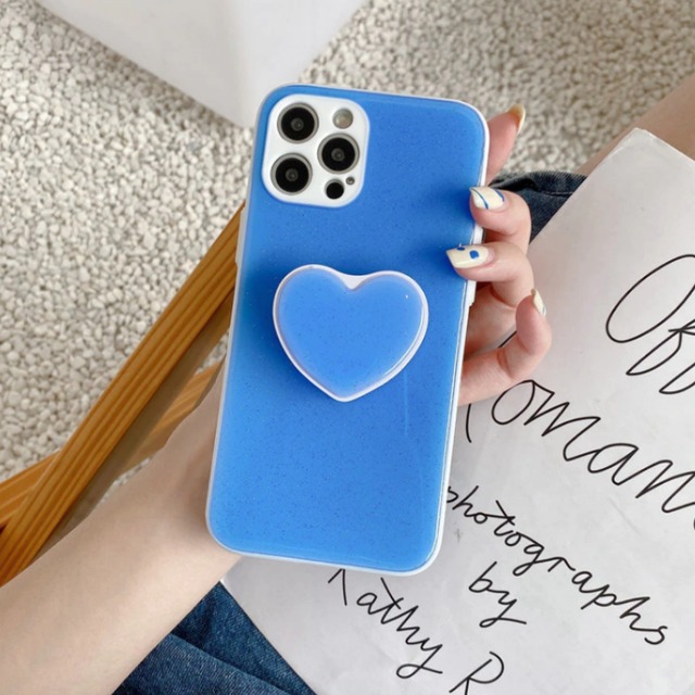 【ブルー系】ミルキーカラー ハート♡ ホルダースタンド付き スマホ ケース カバー iphone13 7 8 Plus SE2 X XS XR 11 Pro 12 mini MAX アイフォンケース