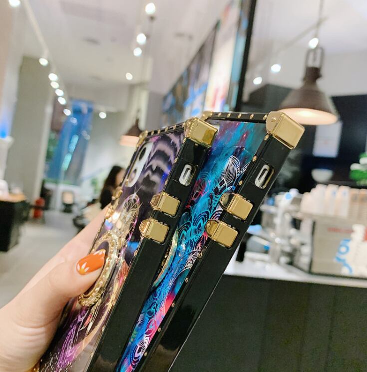 【iPhone】スクエアシリーズ キラキラ ボヘミアン フクロウ スカイ リングホルダー スマホケース カバー iphoneSE2 iphone7 8 Plus X XS MAX XR 11 Pro MAX