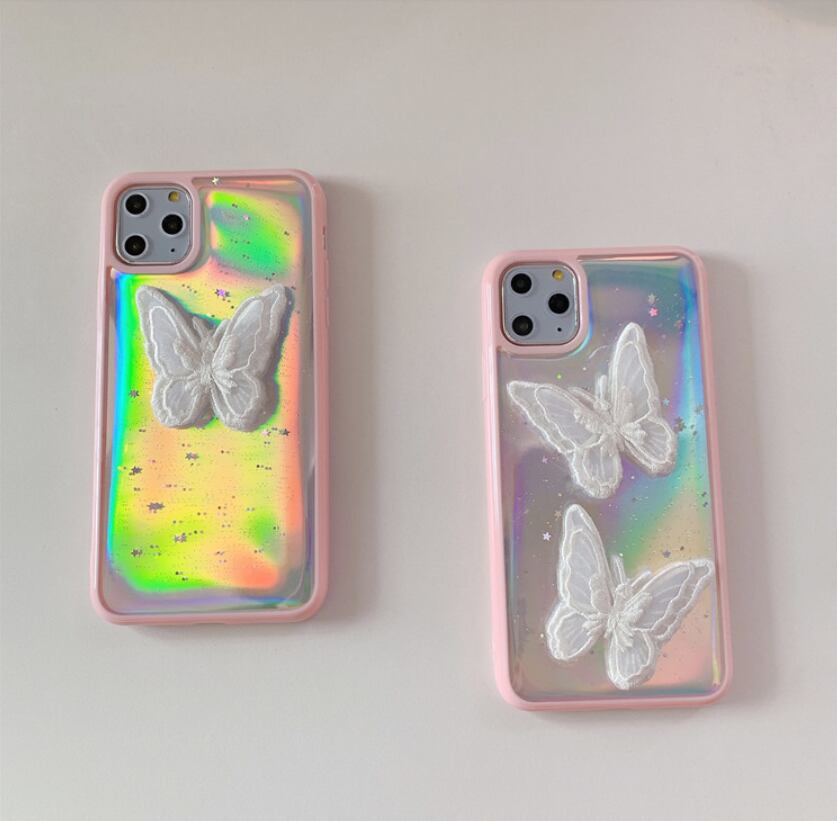 バタフライ レインボー 蝶々 オーロラフィルム スマホケース カバー iphone12 iphone12Pro MAX iphone12mini iphoneSE2 iphone7 8 Plus X XS MAX XR 11 Pro MAX