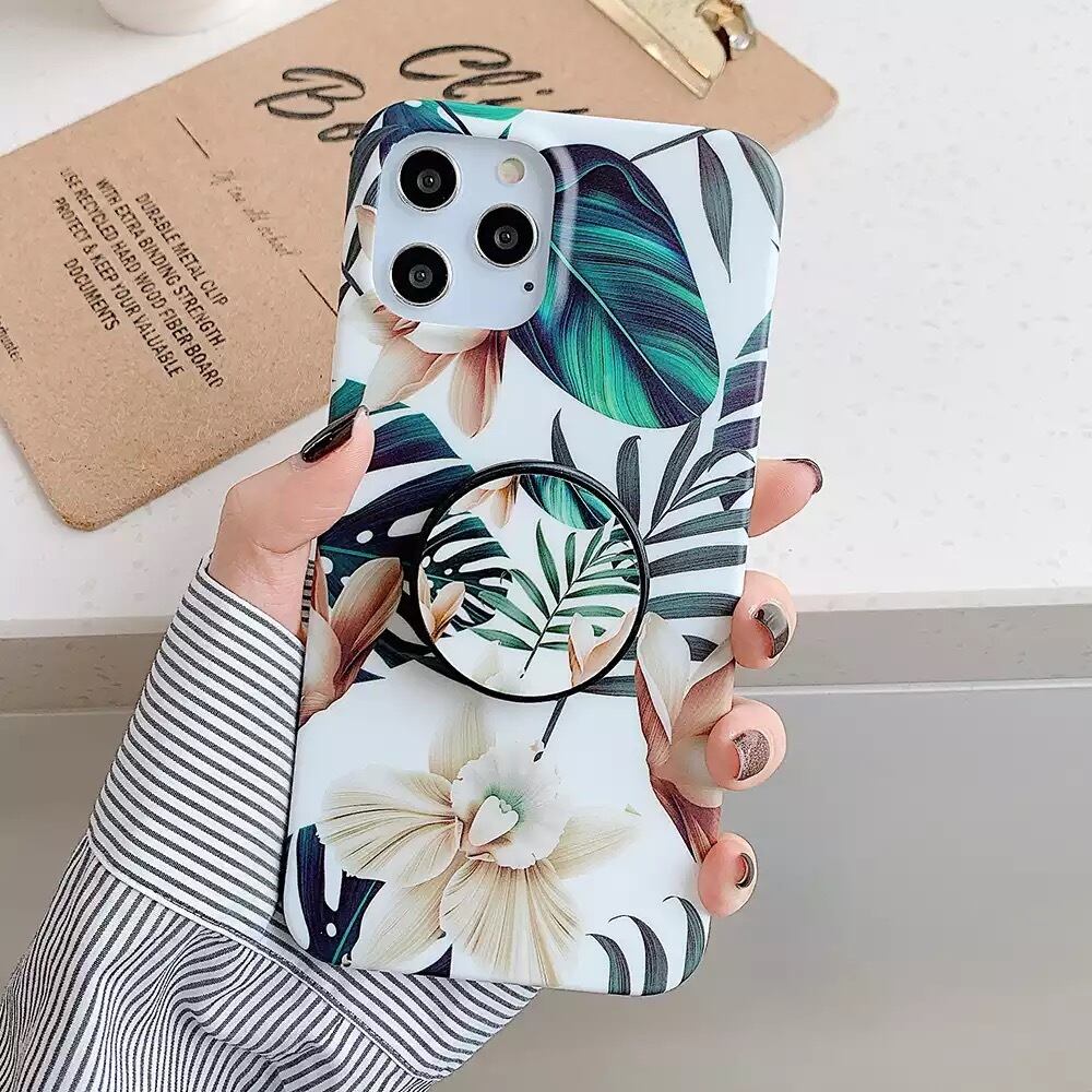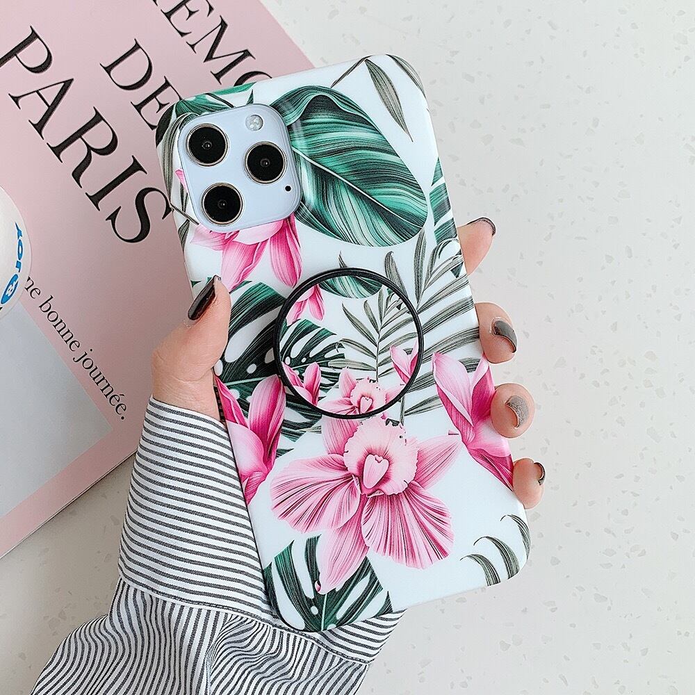 南国 フラワーリーフ トロピカル 花柄 スマホスタンド付 スマホケースカバー iphone13 7 8 Plus SE2 X XS XR 11 Pro 12 mini MAX アイフォンケース