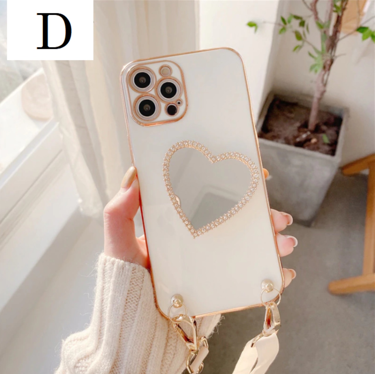 キラキラ ハート ミラー 鏡 ショルダーストラップ スマホケース カバー iphone13 7 8 Plus SE2 SE3 X XS XR 11 Pro 12 mini MAX アイフォンケース