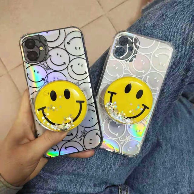 【すぐ発送】ニコちゃん スマイル 流れるキラキララメ スタンドホルダー スマホ ケース カバー iphone アイフォンケース