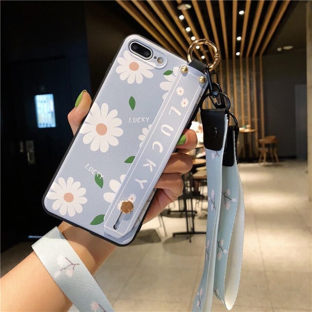 【すぐ発送】ハンドバンド ストラップ付 花柄 フラワー マーガレット LUCKY スマホ ケース カバー iphone アイフォンケース