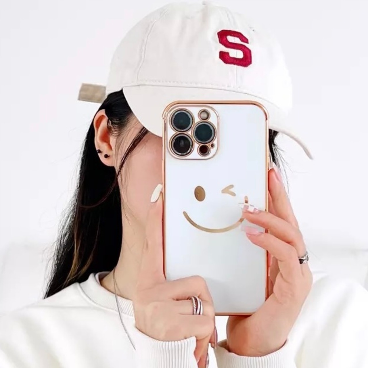 ゴールドフレーム ニコちゃん スマイル サイドニコちゃんFace スマホ ケース カバー iphone14 13 7 8 Plus SE2 SE3 XS XR 11 12 mini MAX アイフォンケース
