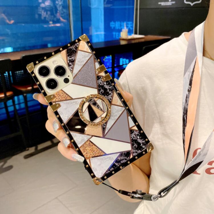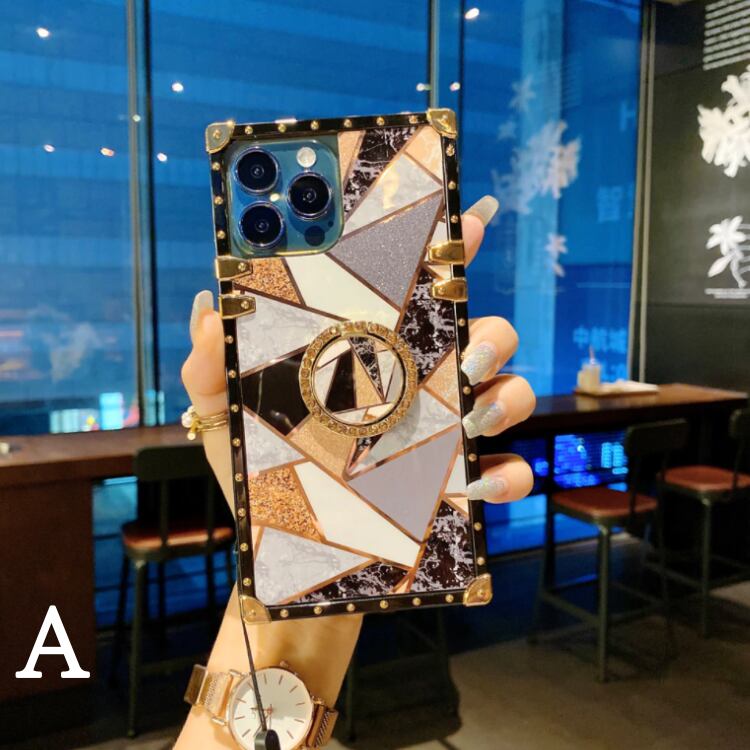 【スクエアシリーズ】 大理石風 幾何学模様 キラキラ ラメグリッター スマホリング付き スマホケース カバー iphone13 7 8 Plus SE2 X XS XR 11 Pro 12 MAX アイフォンケース