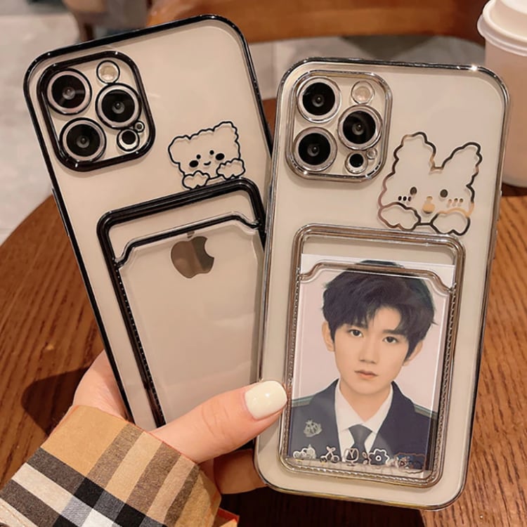 【フォトフレームシリーズ】くま うさぎ フォト&カード収納付き クリア スマホ ケース カバー iphone13 7 8 Plus SE2 X XS XR 11 Pro 12 mini MAX アイフォンケース