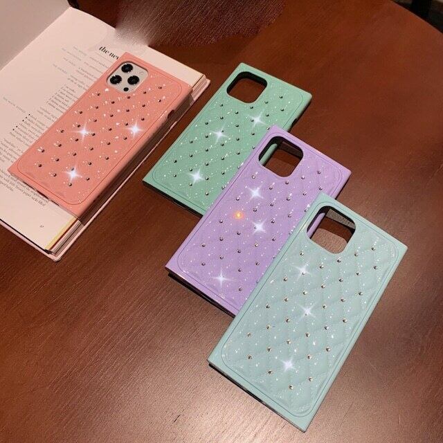 【ホワイト系】スクエアシリーズ キルテング風 キラキラ クリスタル ビーズ 菱形 スマホ ケース カバー iphone13 7 8 Plus SE2 X XS XR 11 Pro 12 mini MAX アイフォンケース