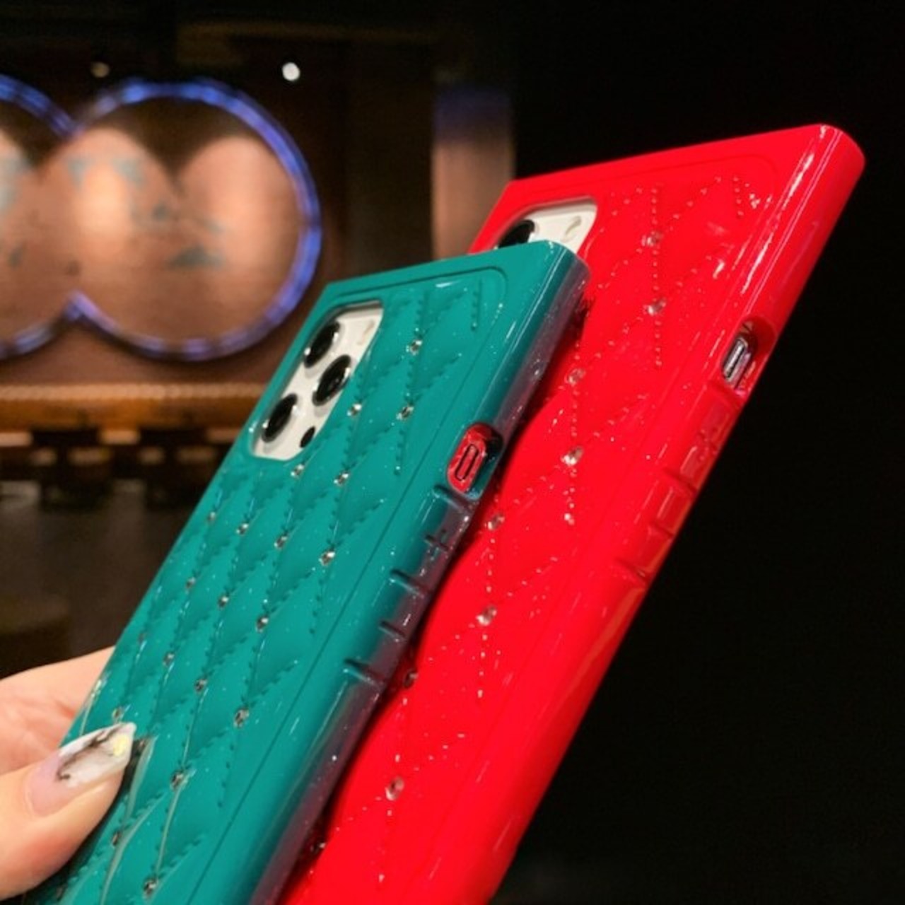 【ピンク系】スクエアシリーズ キルテング風 キラキラ クリスタル ビーズ 菱形 スマホ ケース カバー iphone13 7 8 Plus SE2 X XS XR 11 Pro 12 mini MAX アイフォンケース