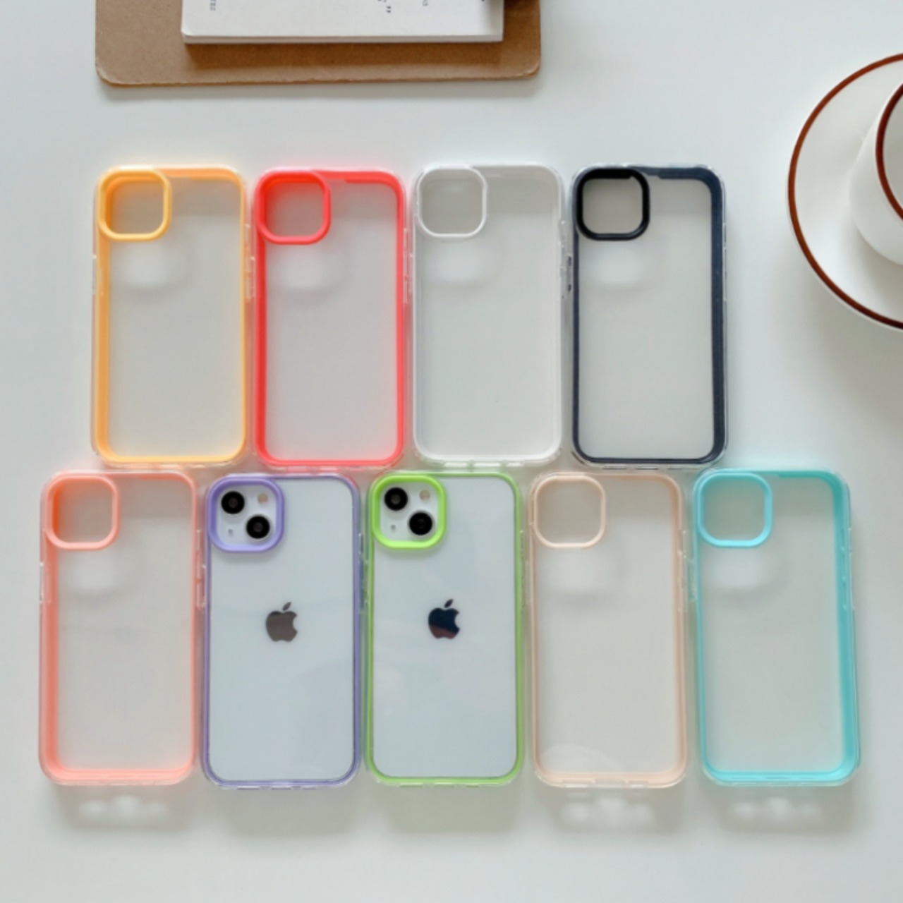 【パープル系】カラーフレーム プロテクト クリア スマホ ケース カバー iphone13 7 8 Plus SE2 X XS XR 11 Pro 12 mini MAX アイフォンケース