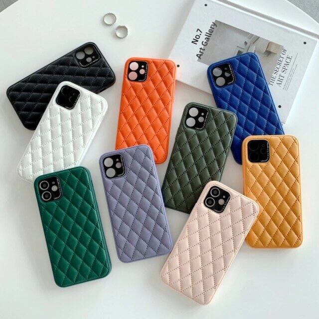 【ブラック系】レザー調 キルティング風 アーガイル スマホ ケース カバー iphone13 7 8 Plus SE2 X XS XR 11 Pro 12 MAX アイフォンケース