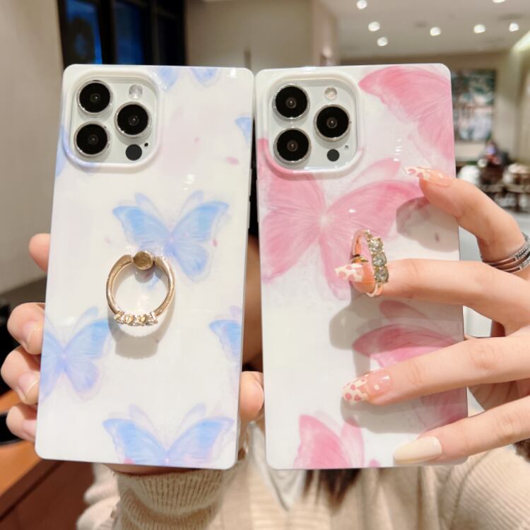 【スクエアシリーズ】シャイニング バタフライ 蝶々 スホリング付き スマホ ケース カバー iphone13 7 8 Plus SE2 X XS XR 11 Pro 12 mini MAX アイフォンケース