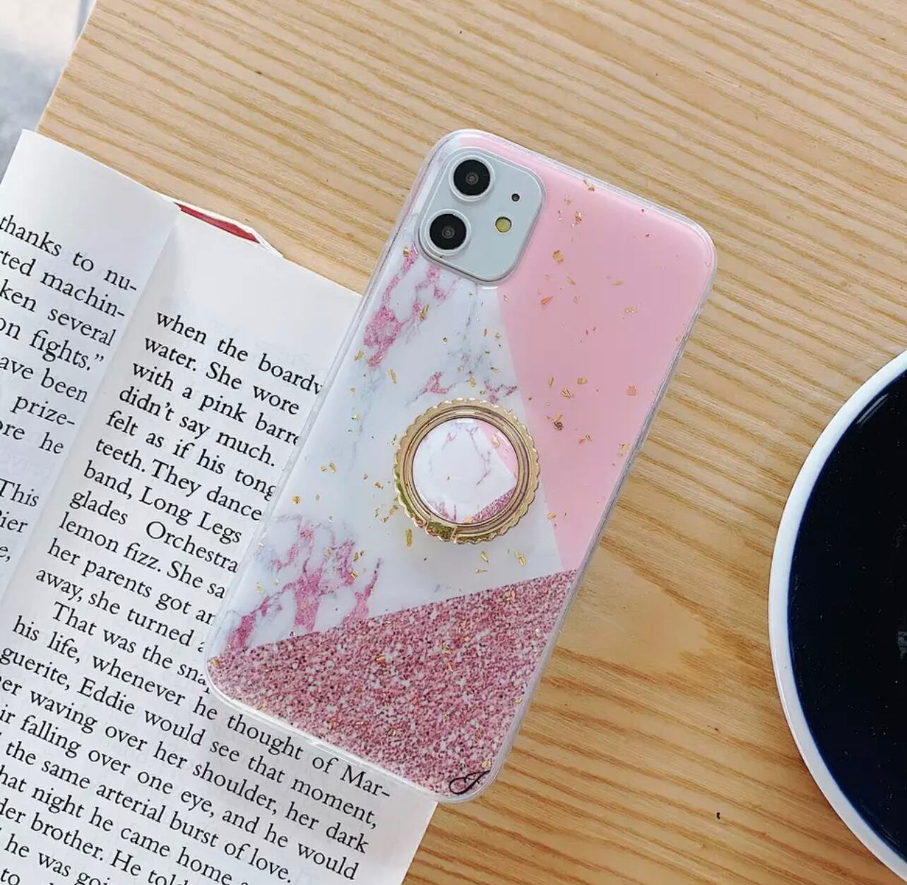 【iphoneXS MAX】ピンク ゴールドラメ 大理石風 リング付き スマホ ケース カバー iphone アイフォンケース