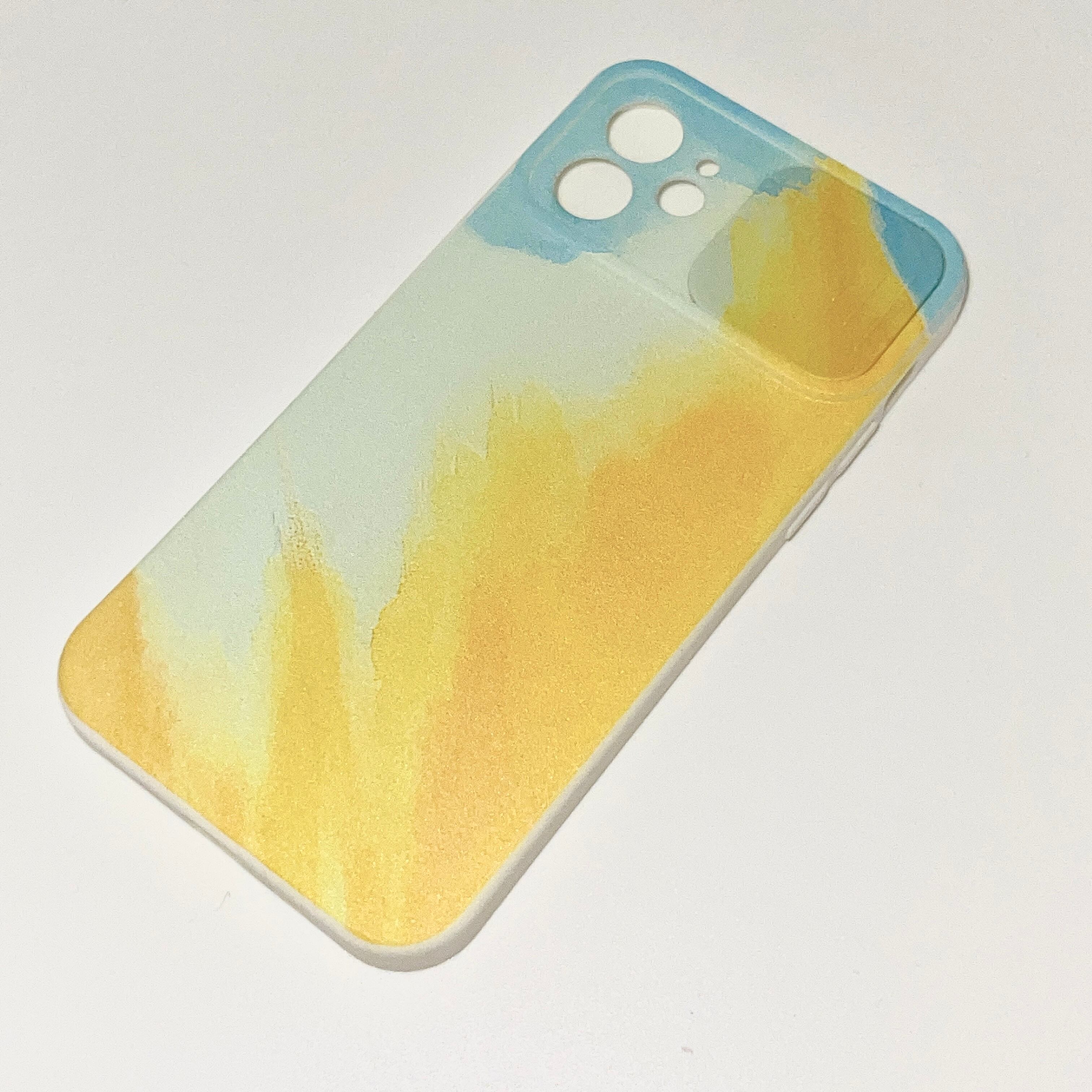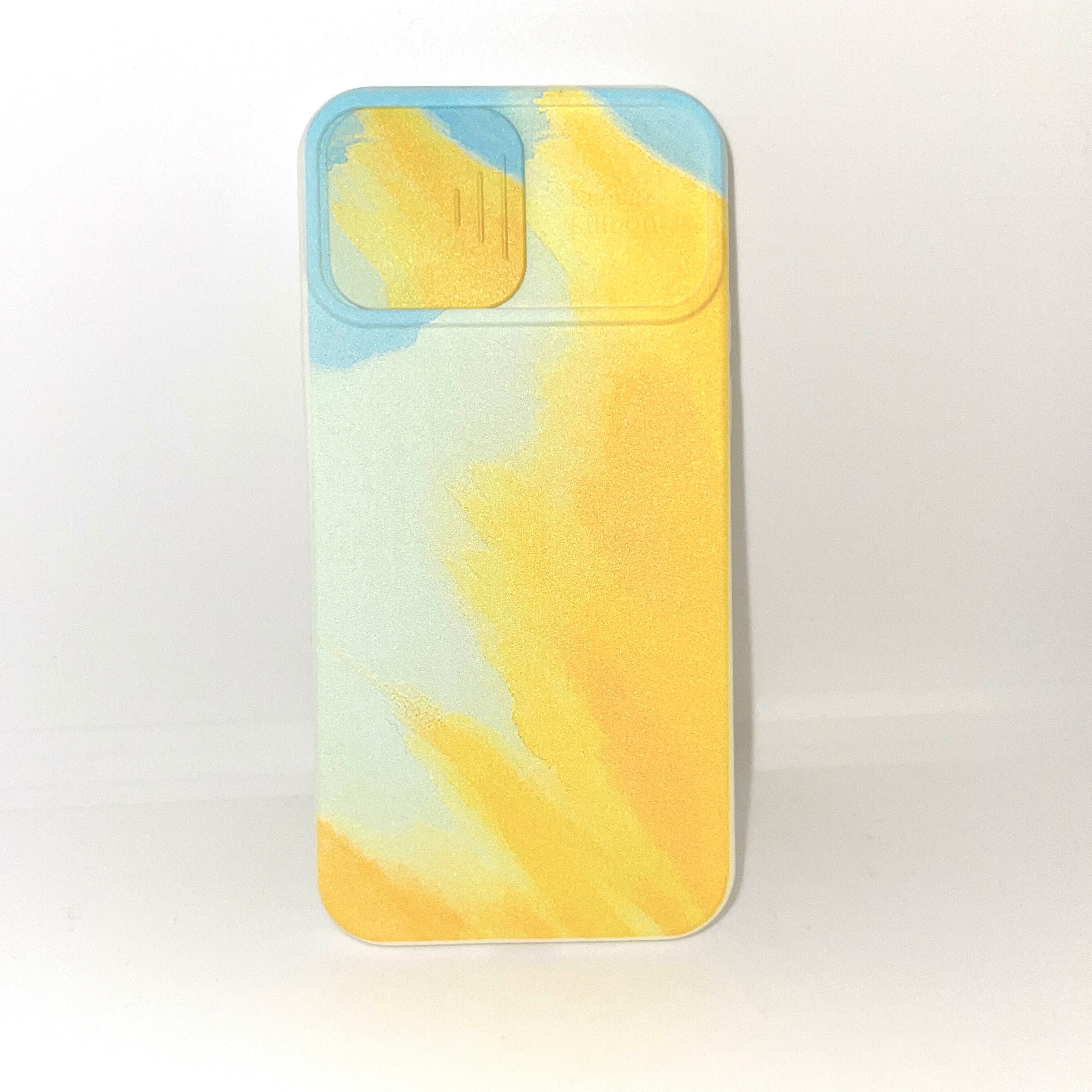 【iphone12】スライドカメラシリーズ 水彩画風 イエロー ブルー グラデーション アート スマホ ケース カバー iphone アイフォンケース