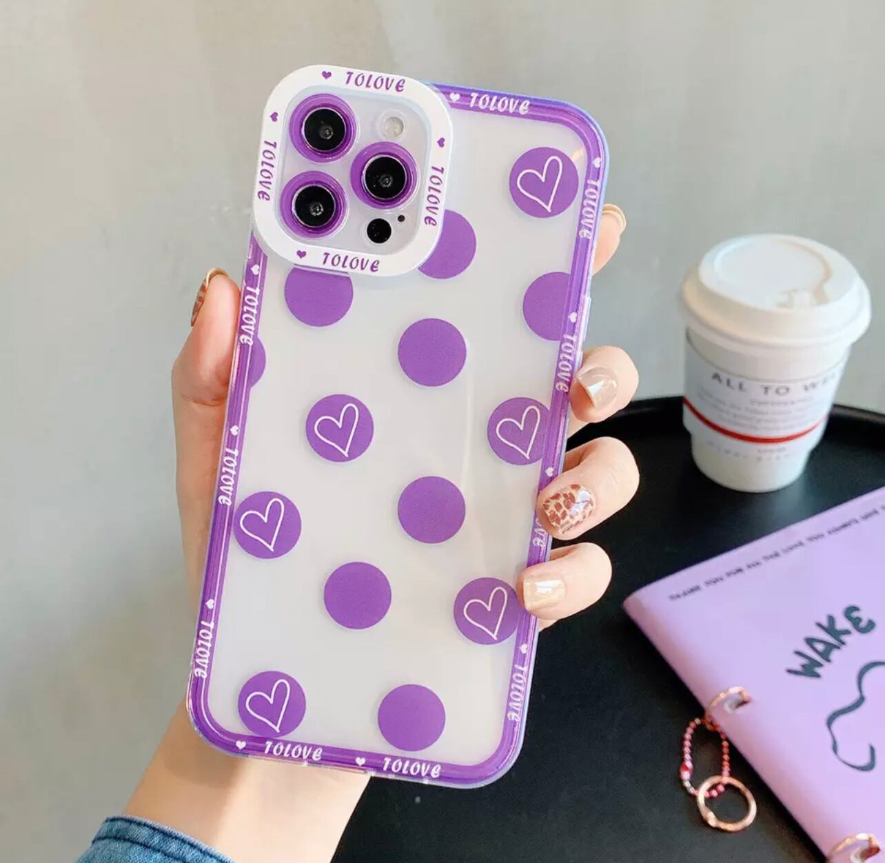 【iphone12】パープルドット 水玉模様 ハート LOVE スマホ ケース カバー iphone アイフォンケース