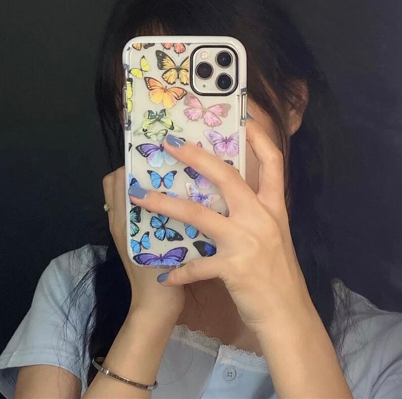 【iphoneXR】カラフルバタフライ 蝶々 クリア スマホ ケース カバー iphone アイフォンケース