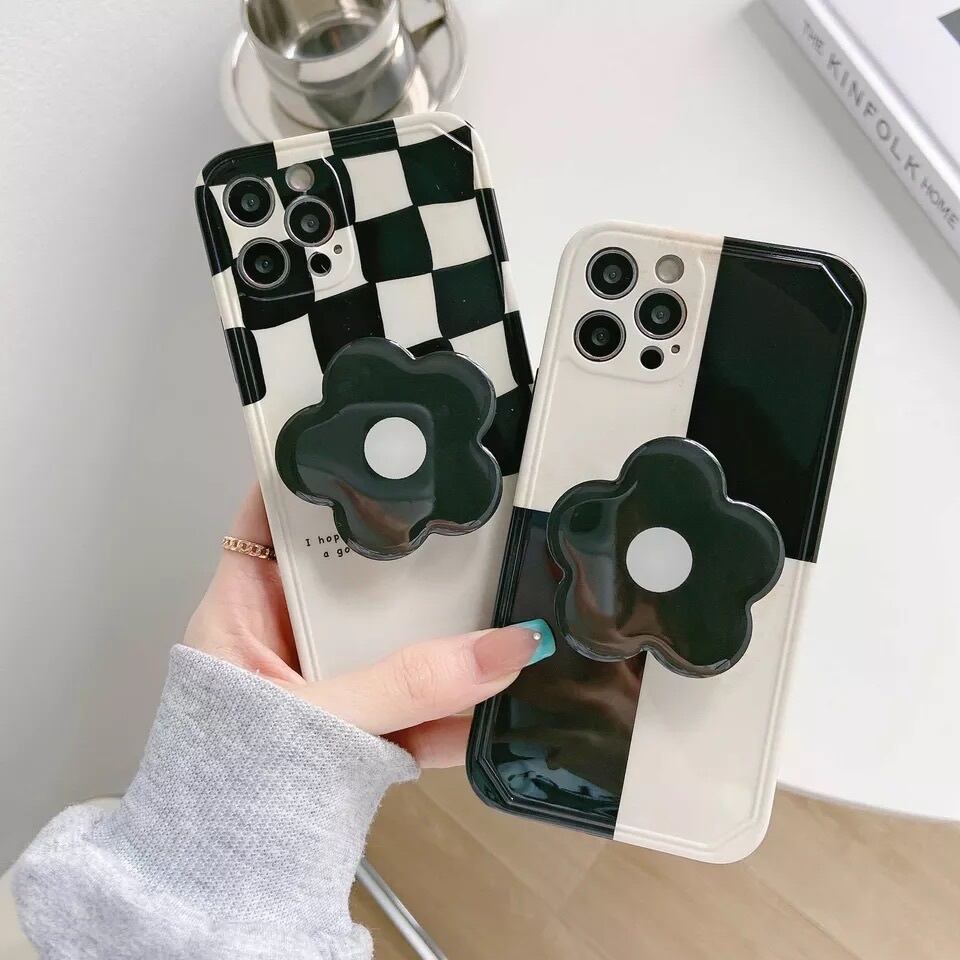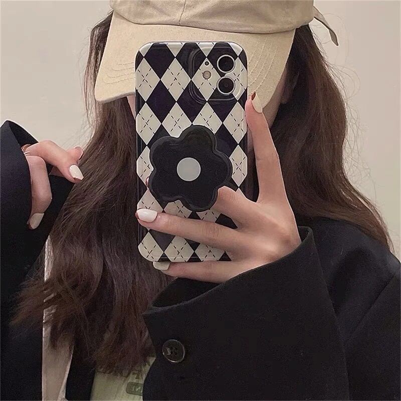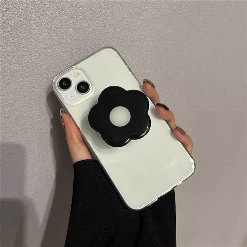 【ポップソケット】ブラックフラワー 花柄 シールタイプ スマホスタンド