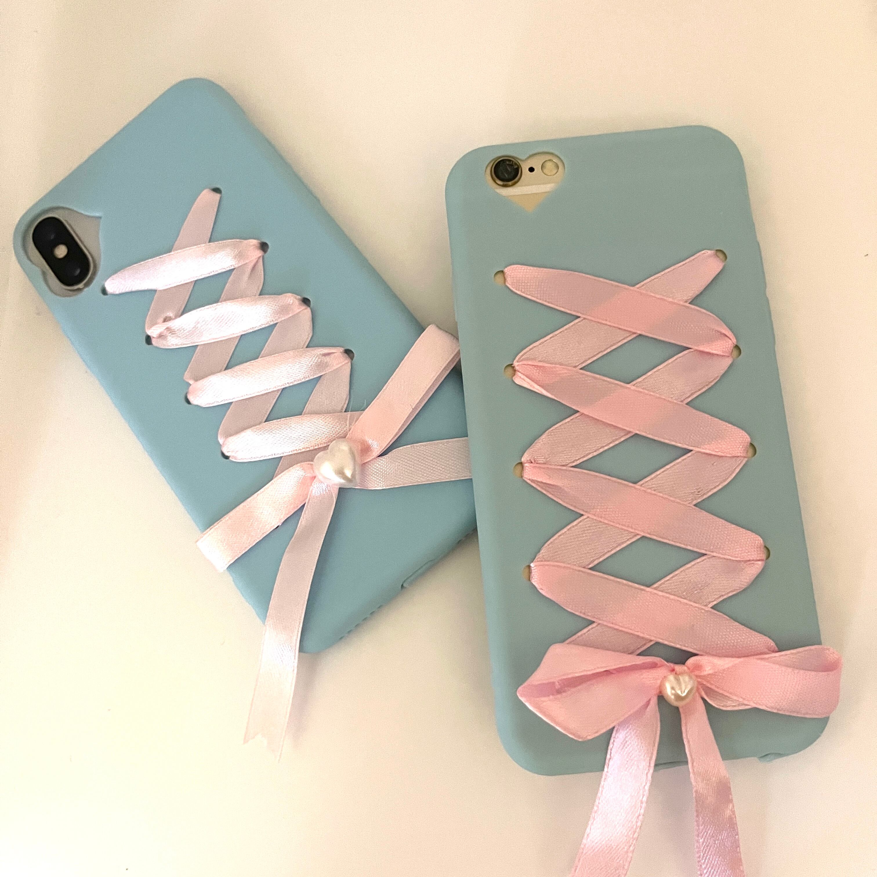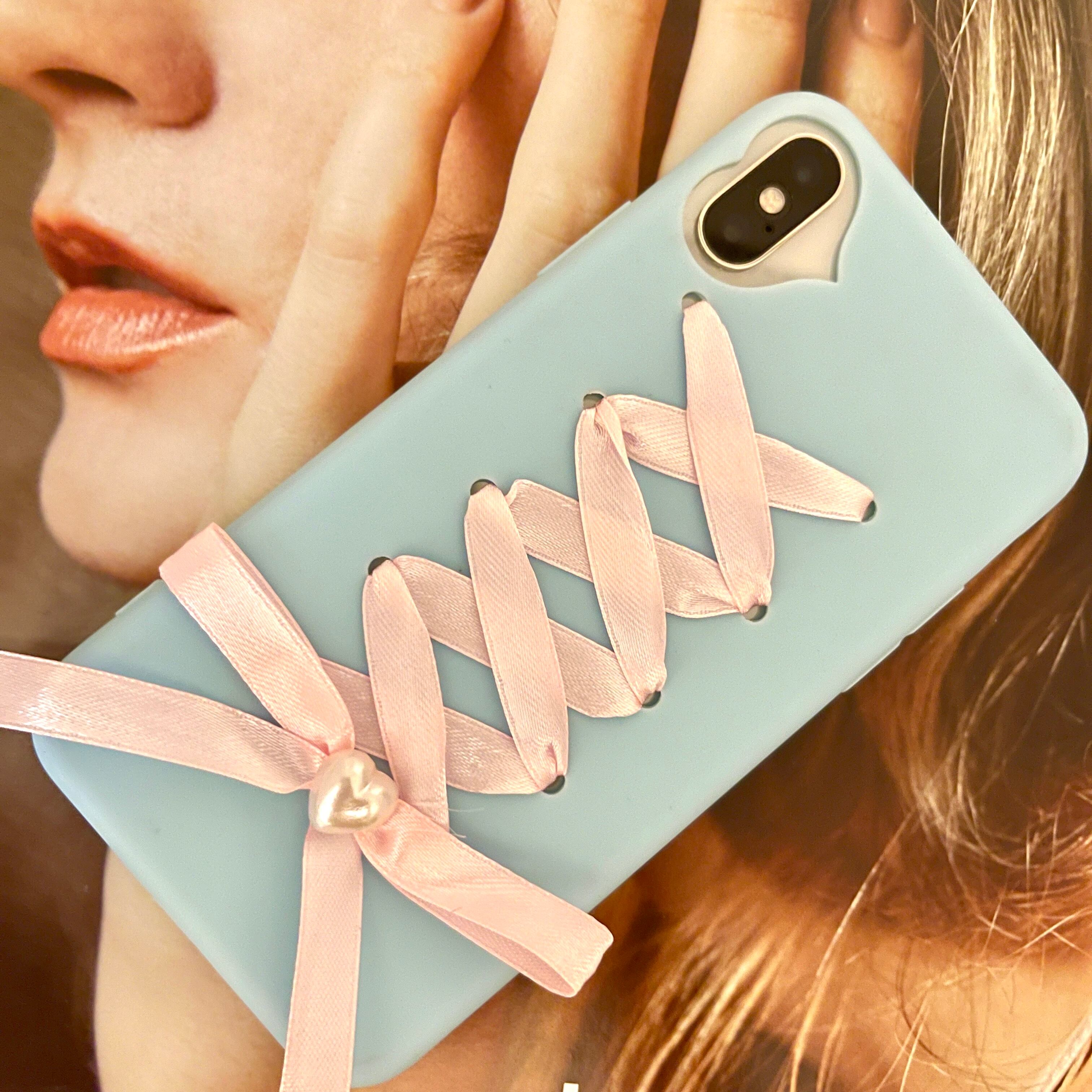 【iphoneX/XS】ピンク レースアップ リボン ハートカメラ シリコン スマホ ケース カバー iphone アイフォンケース