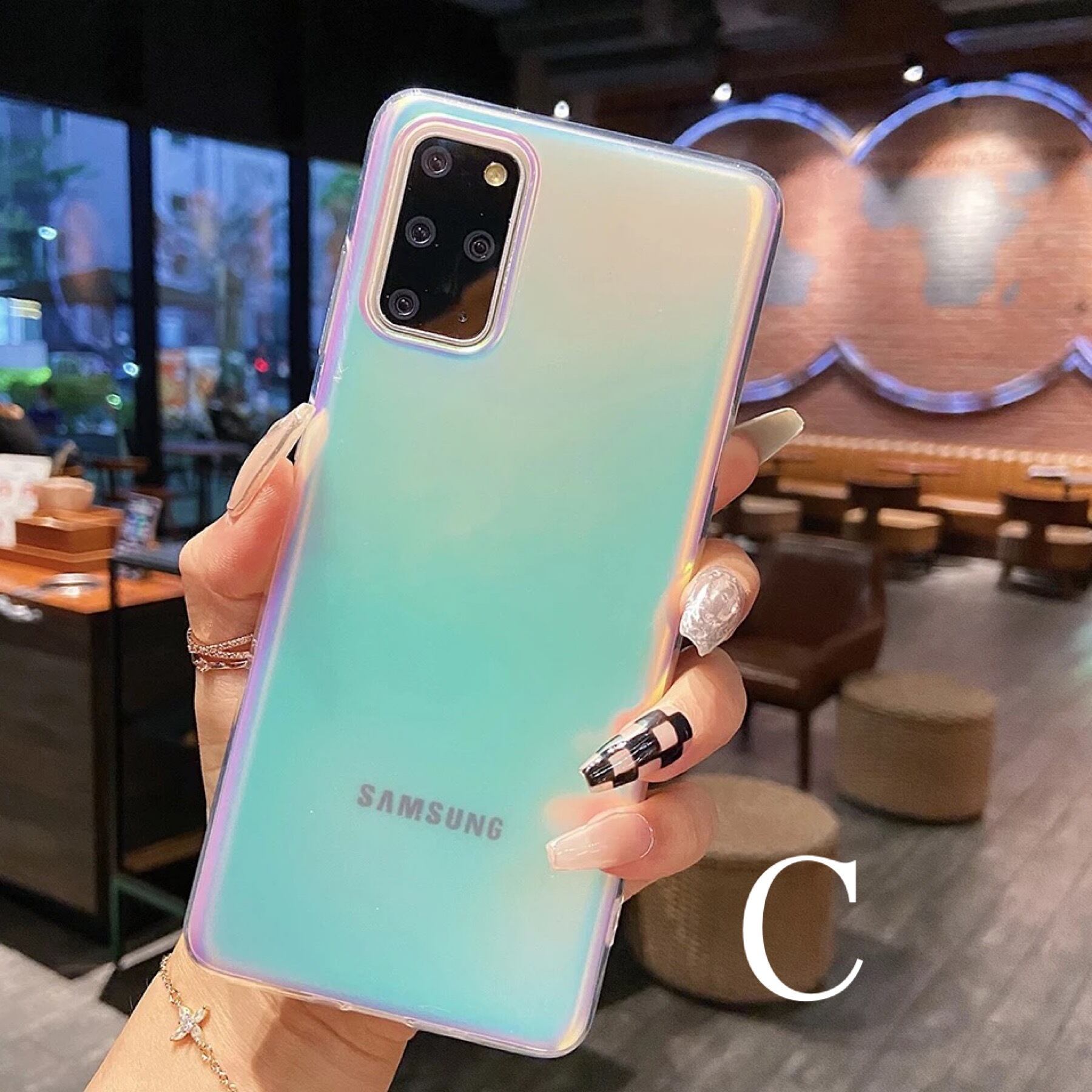 【GALAXY】オーロラ レーザー調 バリアスパターン ダイヤ柄 クリア サムスンギャラクシー スマホケース カバー Samsung サムスン Galaxy ギャラクシー S20 S21 plus ultra A52 A21