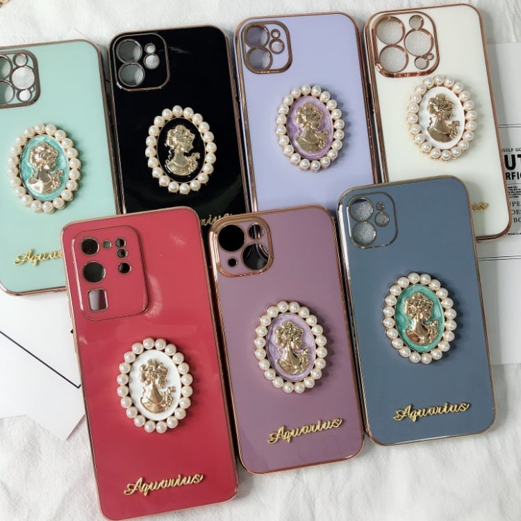 オメガブローチ風デザイン パール調 ゴールドフレーム スマホ ケース カバー iphone13 7 8 Plus SE2 SE3 X XS XR 11 Pro 12 mini MAX アイフォンケース