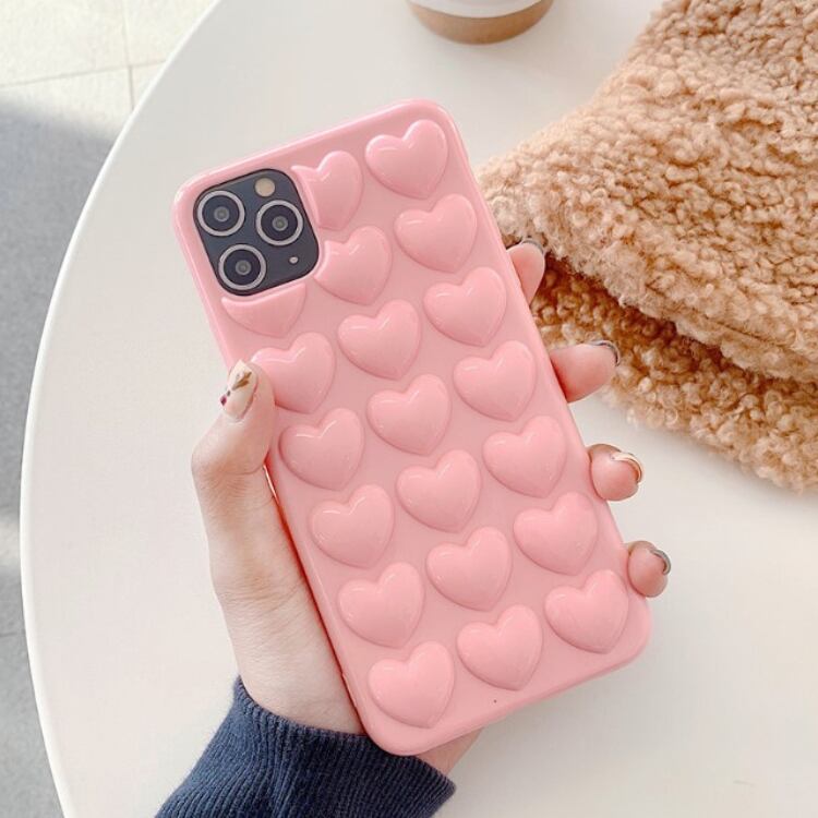 【ピンク系】プレーンカラー ポコポコ ハート♡ スマホ ケース カバー iphone14 13 7 8 Plus SE2 SE3 X XS XR 11 Pro 12 MAX アイフォンケース