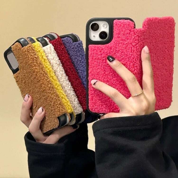 【ブラウン系】プレーンカラー もこもこタオル地 手帳型 スマホ ケース カバー iphone14 13 11 12MAX アイフォンケース