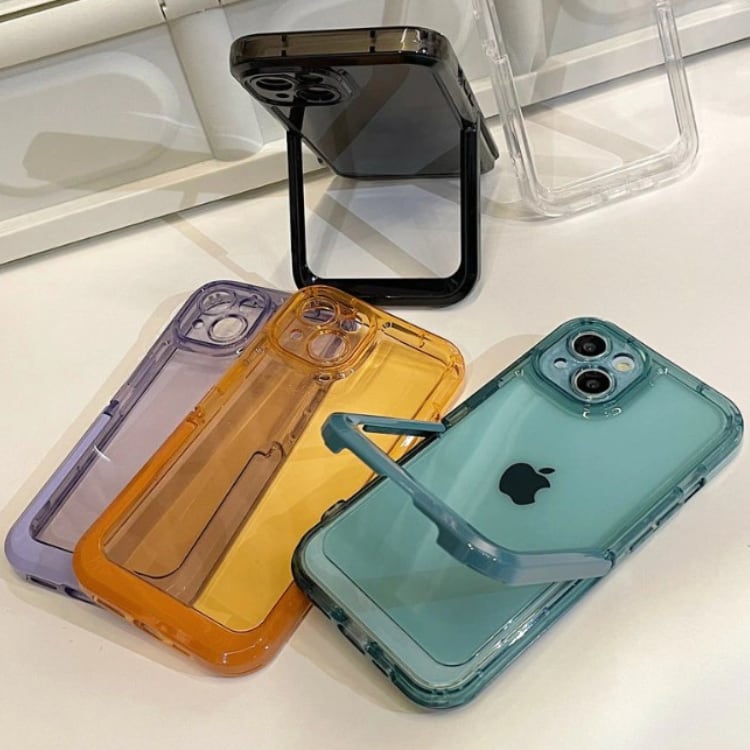 【ブラック系】シンプル キャンディカラー 折りたたみスタンド付き クリア スマホ ケース カバー iphone14 13 11 12 MAX アイフォンケース