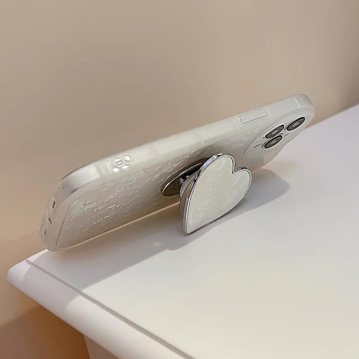 シェル大理石風 ハートスタンド付 ホワイト iphoneケース