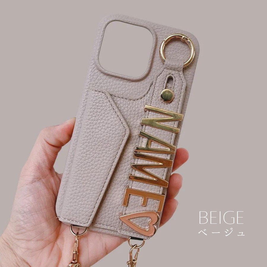 【好きな名前が入れられる♡】オーダーメイド カスタムNAME カード収納付 レザー調 チェーンストラップ スマホケース iphone カバー iphonecase