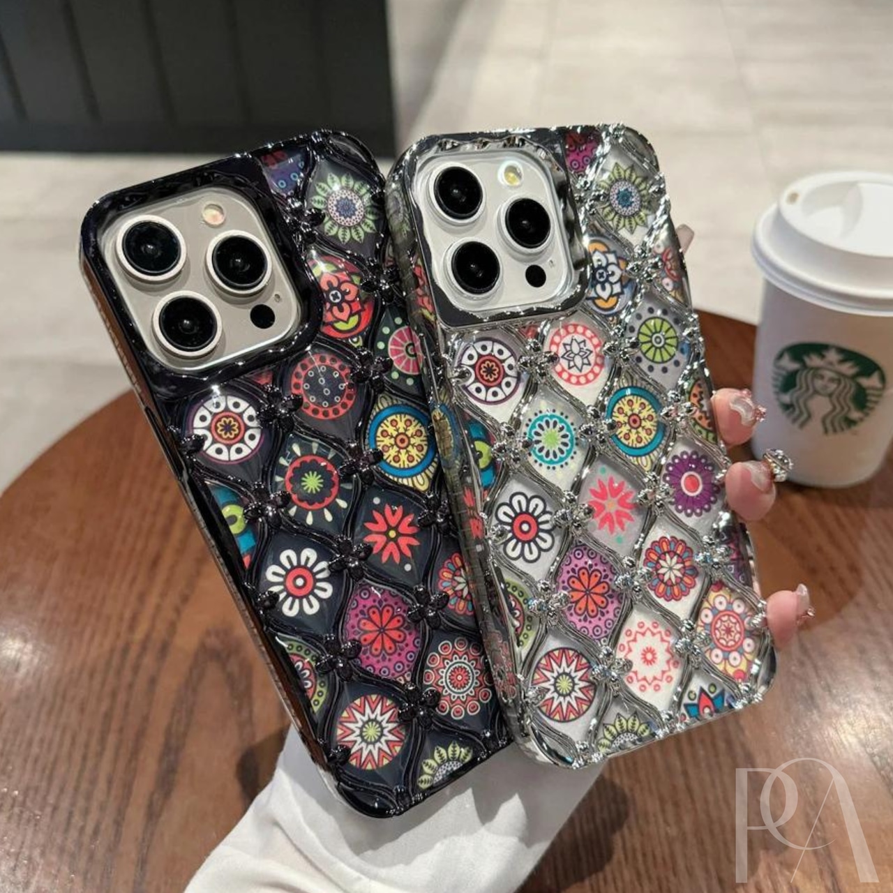 カラフル モロッコフラワー ボヘミアン柄 スマホケース カバー iphoneケース 240407B