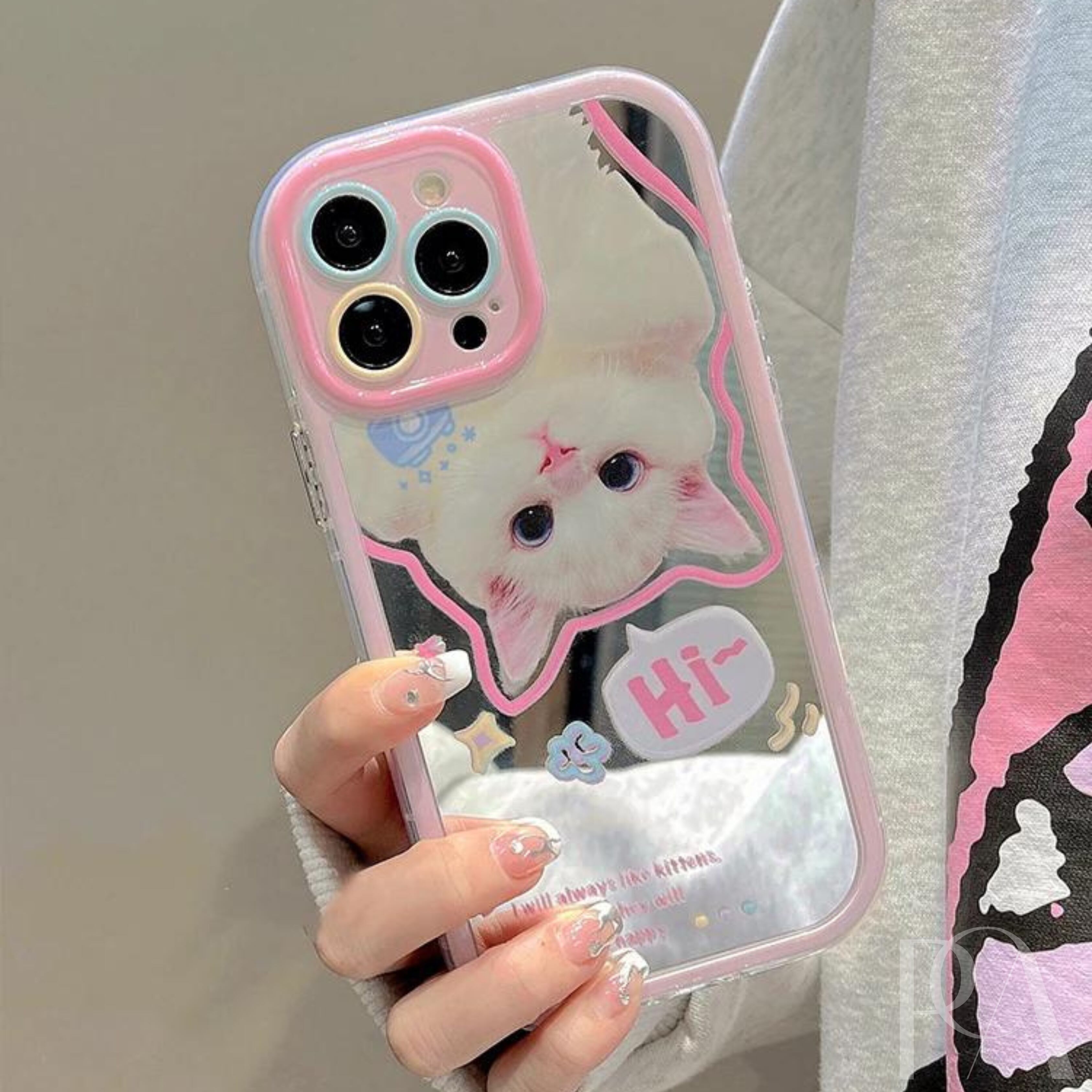 【240411B】Hi 猫 ホワイトキャット ミラー スマホ ケース カバー iphoneケース