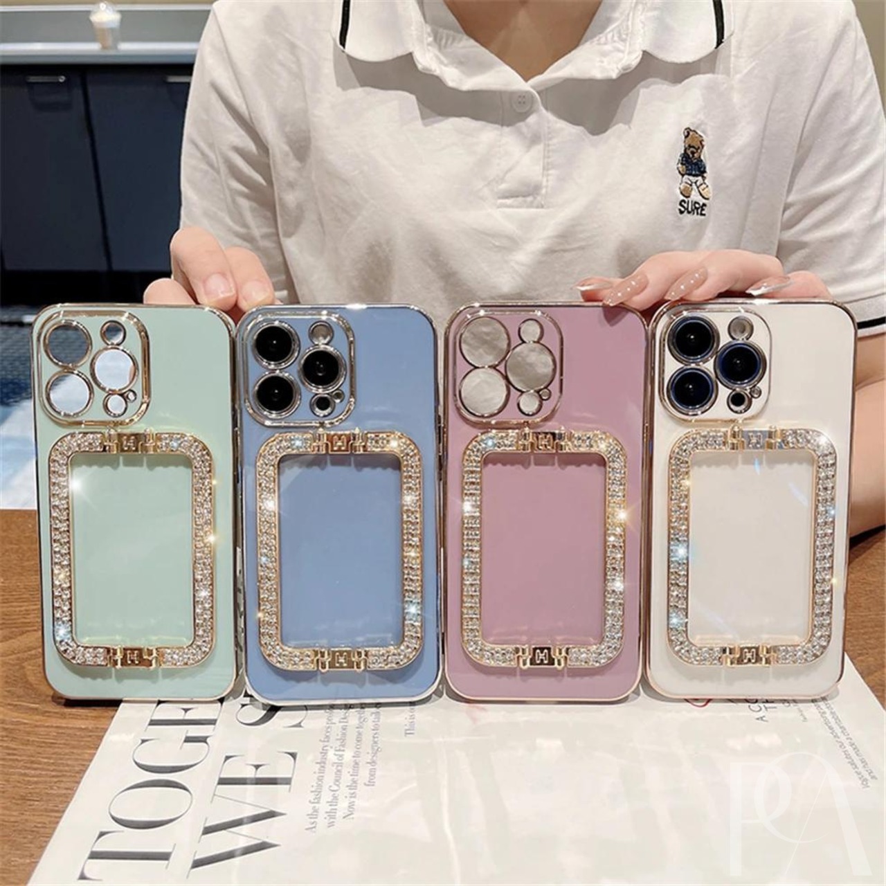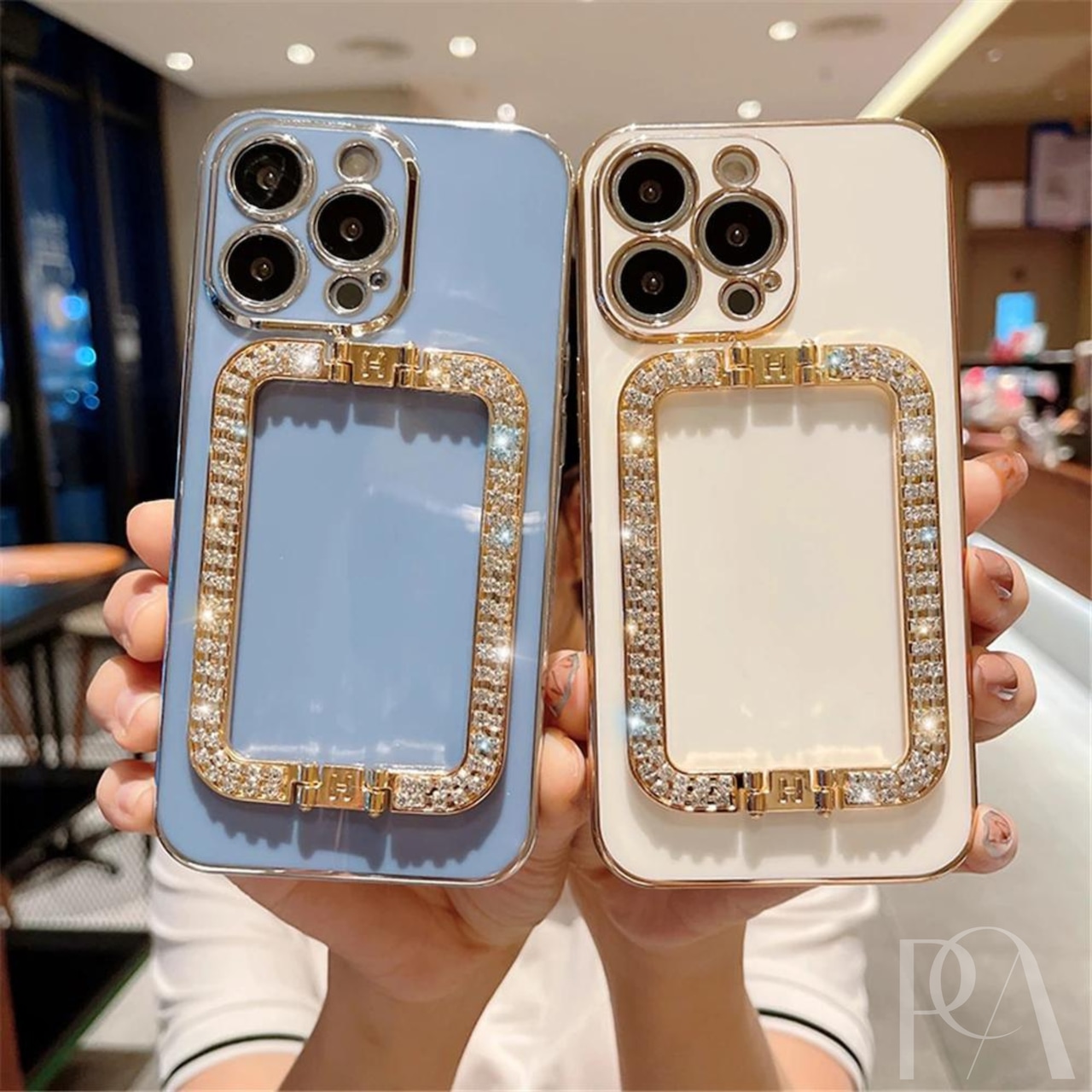 キラキラジュエリーが輝く、ハンドスタンド付きのスマホケース!