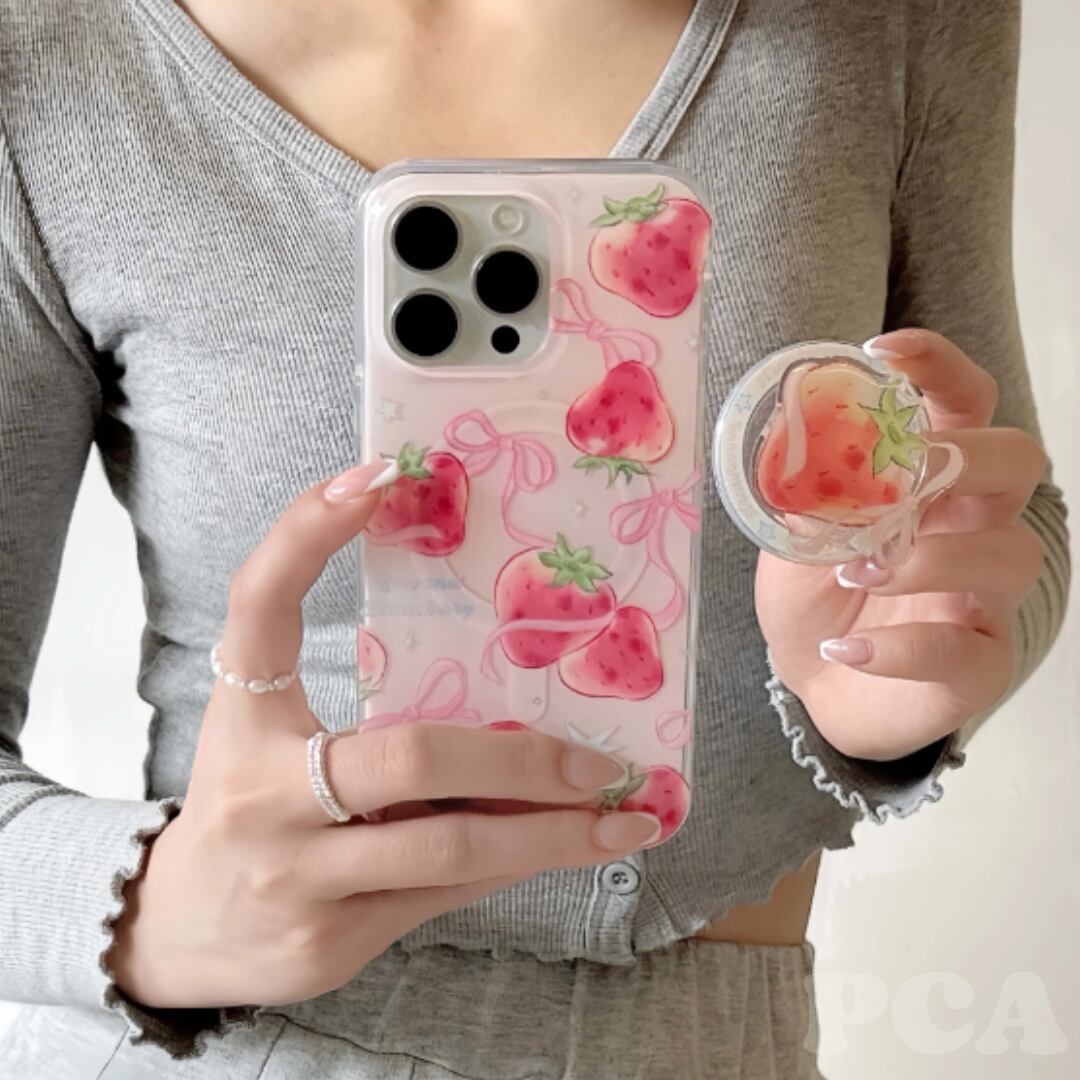 【240608】フルーツ柄 いちご ストロベリー ポップソケット付き スマホケース カバー iphoneケース