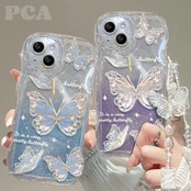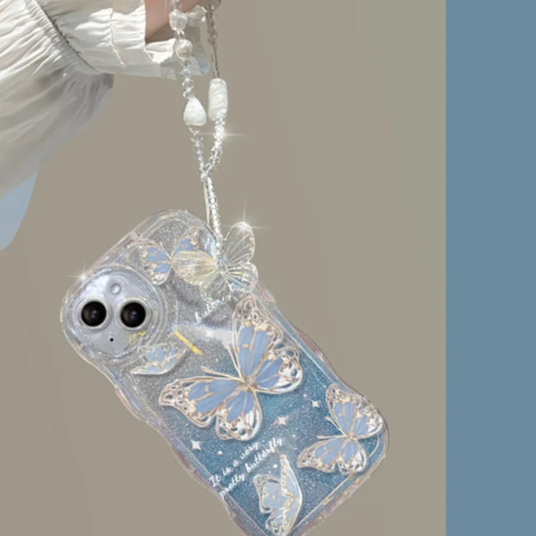 【240914】キラキララメ バタフライ 蝶々ストラップ付き スマホ ケース カバー iphoneケース