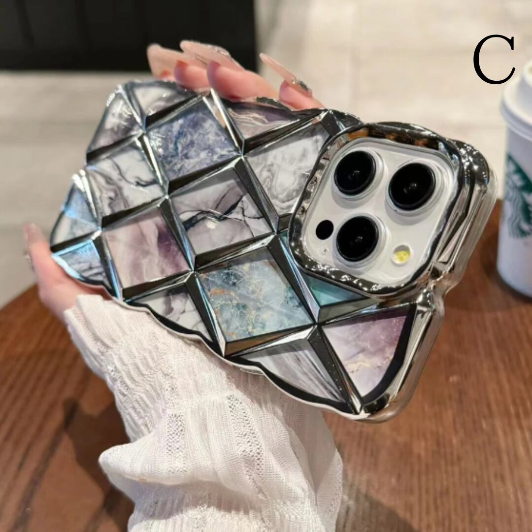 【240922】 【ウエーブフレーム】キラキラ 大理石風 ダイヤ柄 iphonケース スマホケース カバー