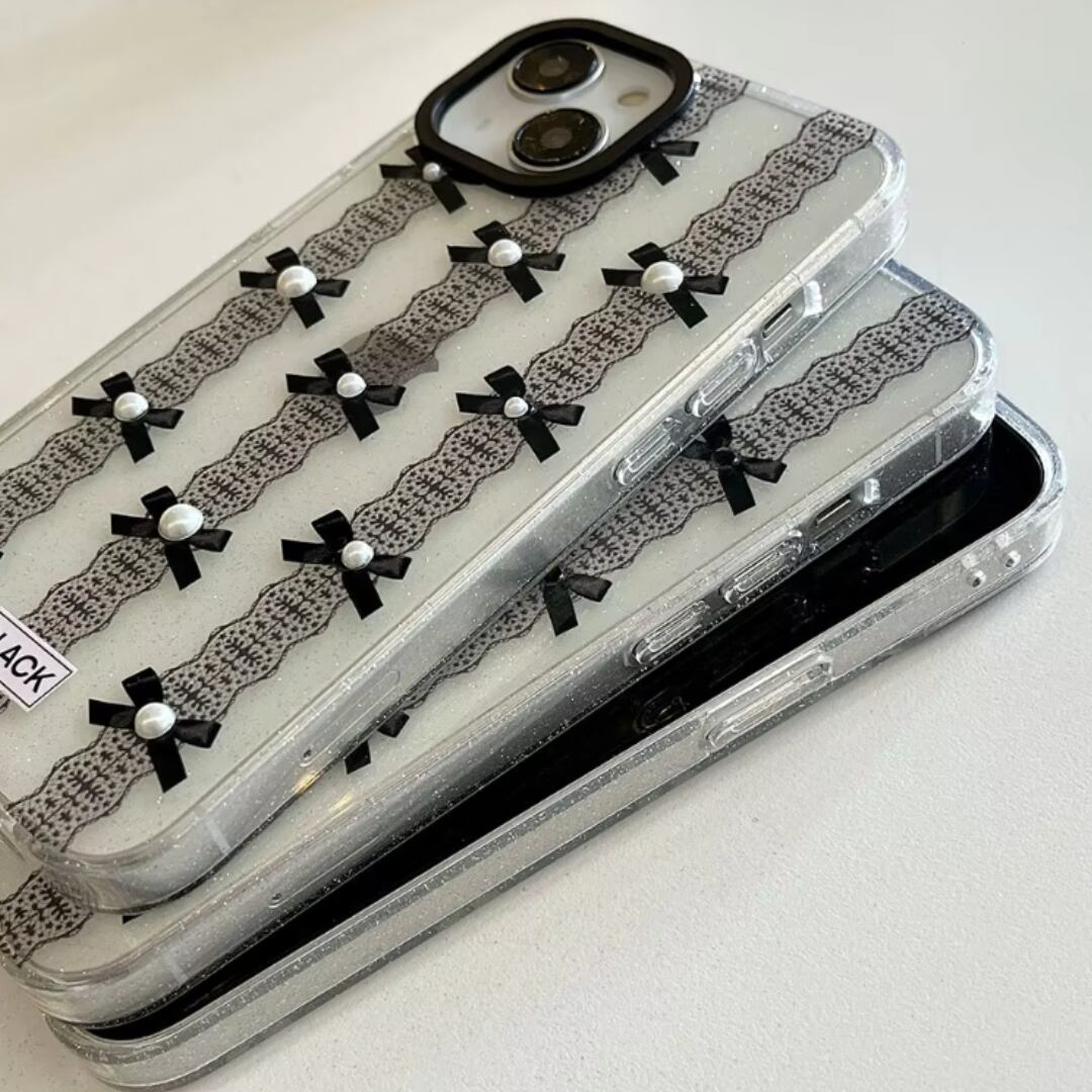 【241001】ストライプ リボン レースケース スマホ ケース カバー iphoneケース