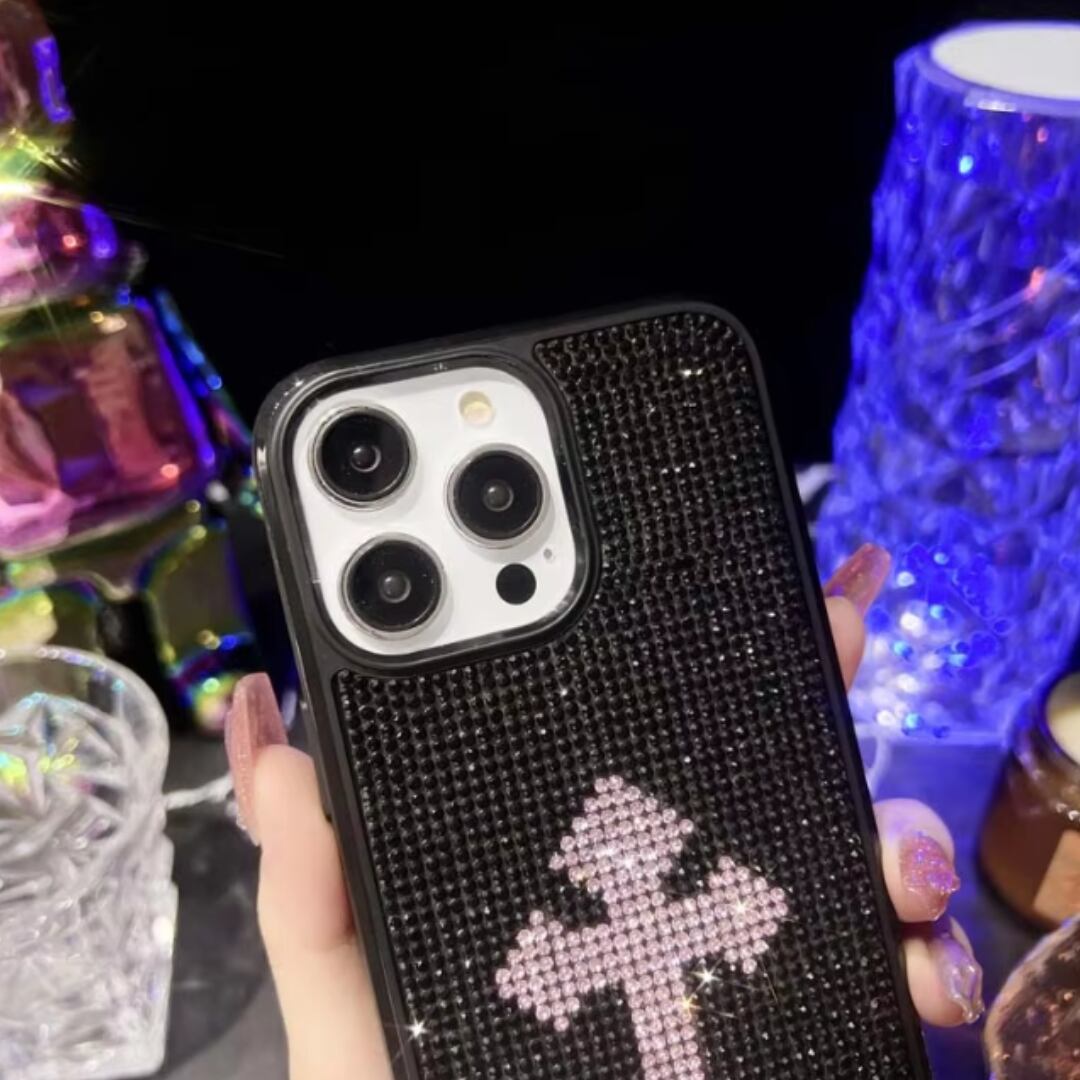 【241004】 キラキラ ジュエリーストーン ロザリオ 十字架 スマホ ケース カバー iphoneケース